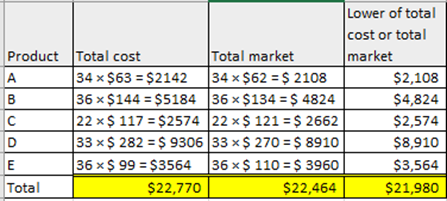 Homework answers / question archive / On the basis of the following data: Cost per Inventory Quantity Market Value per Unit (Net Realizable Value) Product Unit Model A 34 $63 $62 Model B 36 144 134 Model C 22 117 121 Model D 33 282 270 Model E 36 99 110 Determine the value of the inventory at the lower of cost or market