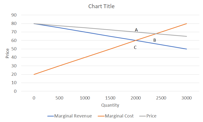 Point C: Q = 2000. MR = 80 - 0.01 * 2000 = 60