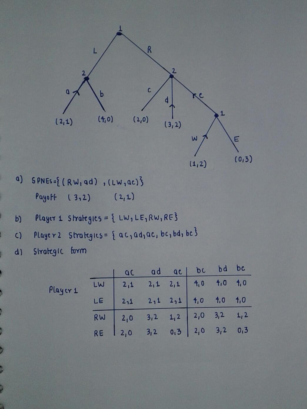 Consider the following perfect information game (14.5) 1 . L 04 2 2 b d c + w E 0 ch