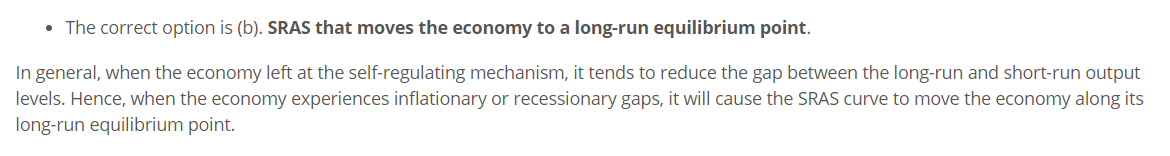 In a self-regulating economy, inflationary and recessionary gaps produce shifts of the: