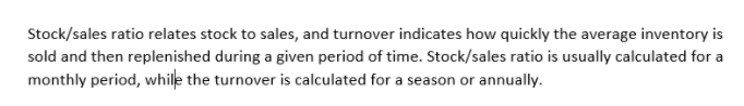 Mark runs a score and he wants to understand how long he can go without replenishing the stock he currently has OH. The best way to do this is by looking at ? the stock-to-sales ratio B daily sales reports © vendor shipping involces @ a salesperson's monthly customer list