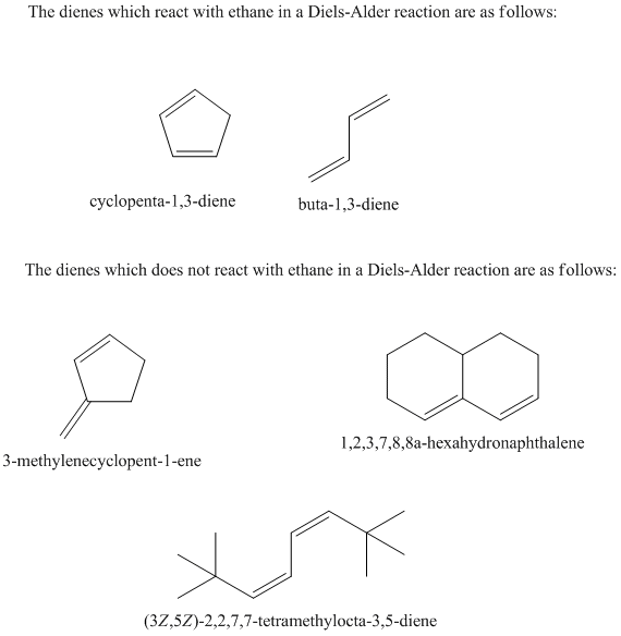 Which dienes will react with ethene in a Diels?Alder reaction?