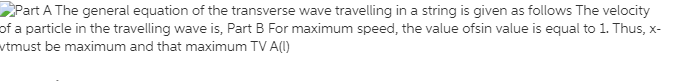 Find the maximum speed of a particle of the string.