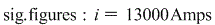 Note: If you are using an online homework submission system you may need to account for significant figures. Since there are only 2 significant digits, you may need to round your final answer to 13,000 Amps