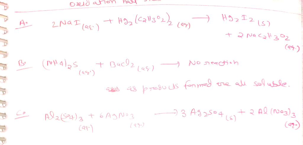 Homework answers / question archive / Balancing A: NaI(aq)+Hg2(C2H3O2)2(aq)→ B: (NH4)2S(aq)+BaCl2(aq)→ C: Al2(SO4)3(aq)+AgNO3(aq)→ Express your answer as a chemical equation
