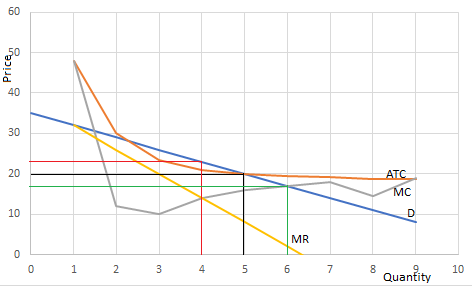 | Q | P | ATC | TC | MC | TR | MR | Profit |